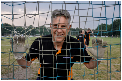 Op de groepsfoto (hierboven) ontbreekt helaas Roelie. Keeper Pieter was echter in topvorm!